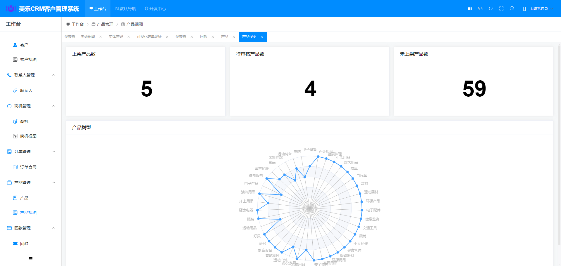 是基于美乐低代码平台的能力,通过对标标准CRM客户管理系统的核心场景业务流、功能,而搭建的一款拥有强大自定义能力的“CRM”场景应用。